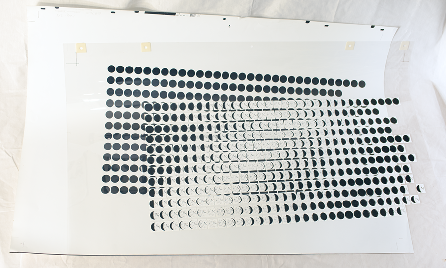 The Daily Planet Almanac ceased publication in 1982. Lots of fans, but it was expensive to produce and the original staff drifted on into other ventures ... except for Kim Long, who created the original moon artwork and continued the adventure of producing The Moon Calendar. Beginning with the Daily Planet Almanac, producing the Calendar involved “old-fashioned” systems linked to offset printing. This meant producing each year’s calendar at its full poster size, with each type and graphic element carefully cut out and pasted onto large sheets of acetate.