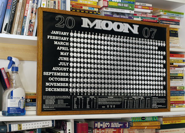 But as access to desktop computers and digital processing arrived in the mid-1980s, production shifted to this much more efficient method. By 2007, the poster version of The Moon Calendar poster was replaced with the card format, a casualty of the extra packaging and distribution handling costs associated with rolled posters. For a few years beginning in 2011, the author experimented with a standard 13-page wall calendar before shifting back to the card size. Along the way, another experiment was Moon Wrap, sheets of moon phase wrapping paper sold through bookstores. Another sales failure, perhaps to be resurrected some time in the future.